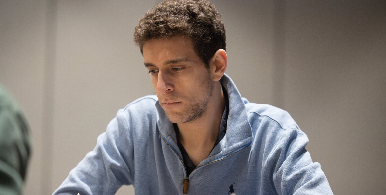 This undated photo released by Charlotte Chess Center shows Daniel Naroditsky playing chess on the board. (Kelly Centrelli/Charlotte Chess Center via AP